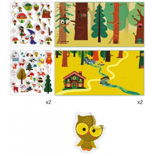 Planșe cu abțibilduri repoziționabile Djeco, Pădurea fermecată