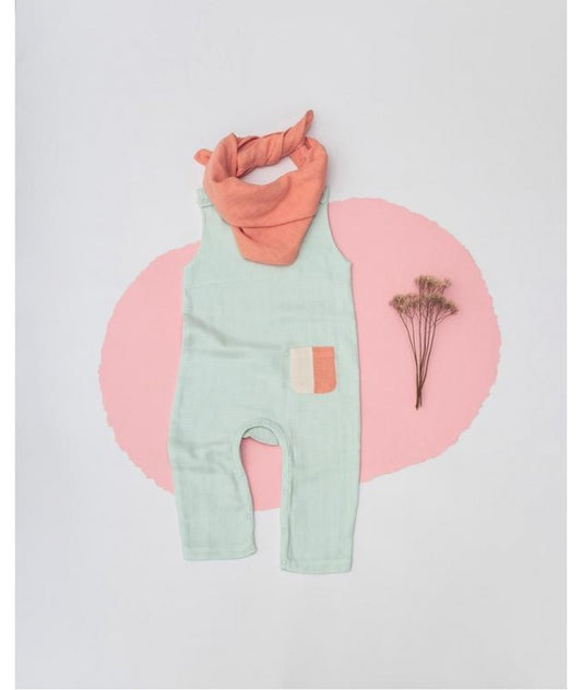 Salopetă fără mâneci din muselină de bumbac organic - Organic By Feldman Pentru Copii - Play Of Colors Glacier