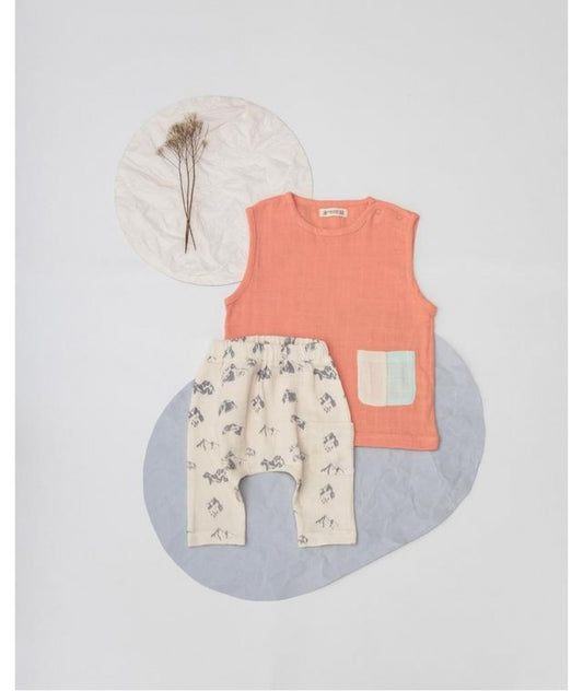 Salopetă fără mâneci din muselină de bumbac organic - Organic By Feldman Pentru Copii - Play Of Colors Canyon Sunset