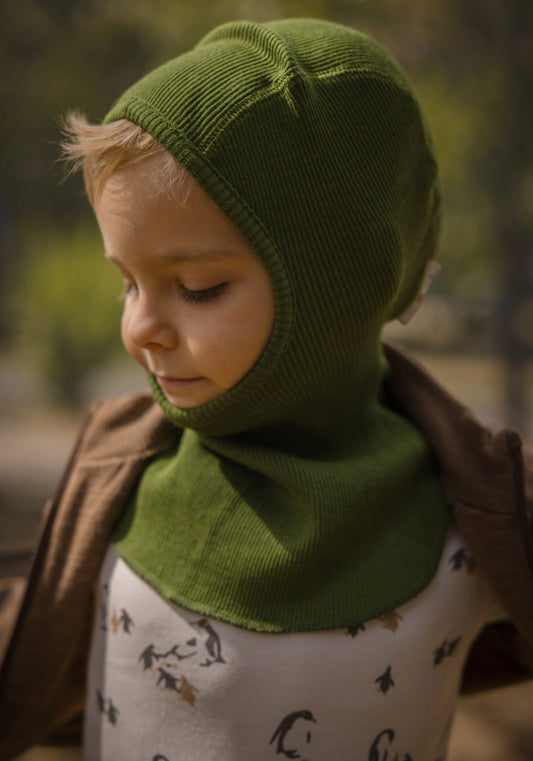 Cagulă ManyMonths Unique Kitty din lână merinos - Forest Floor Green